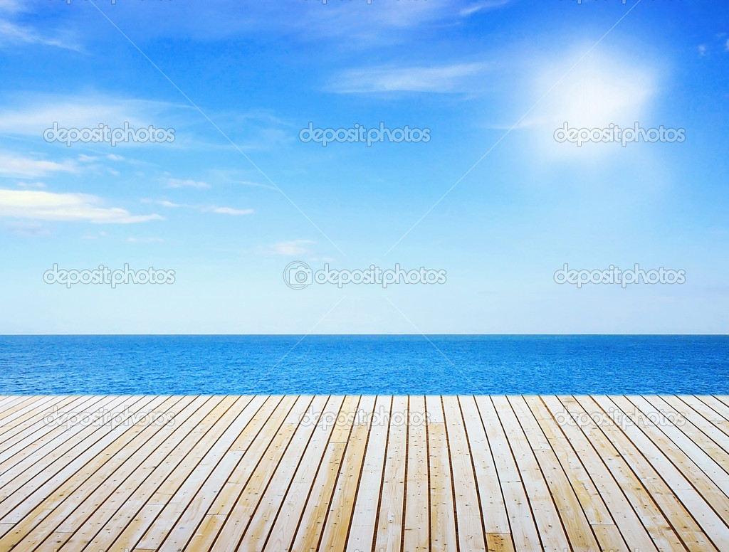 View to sunny sea from wooden pier